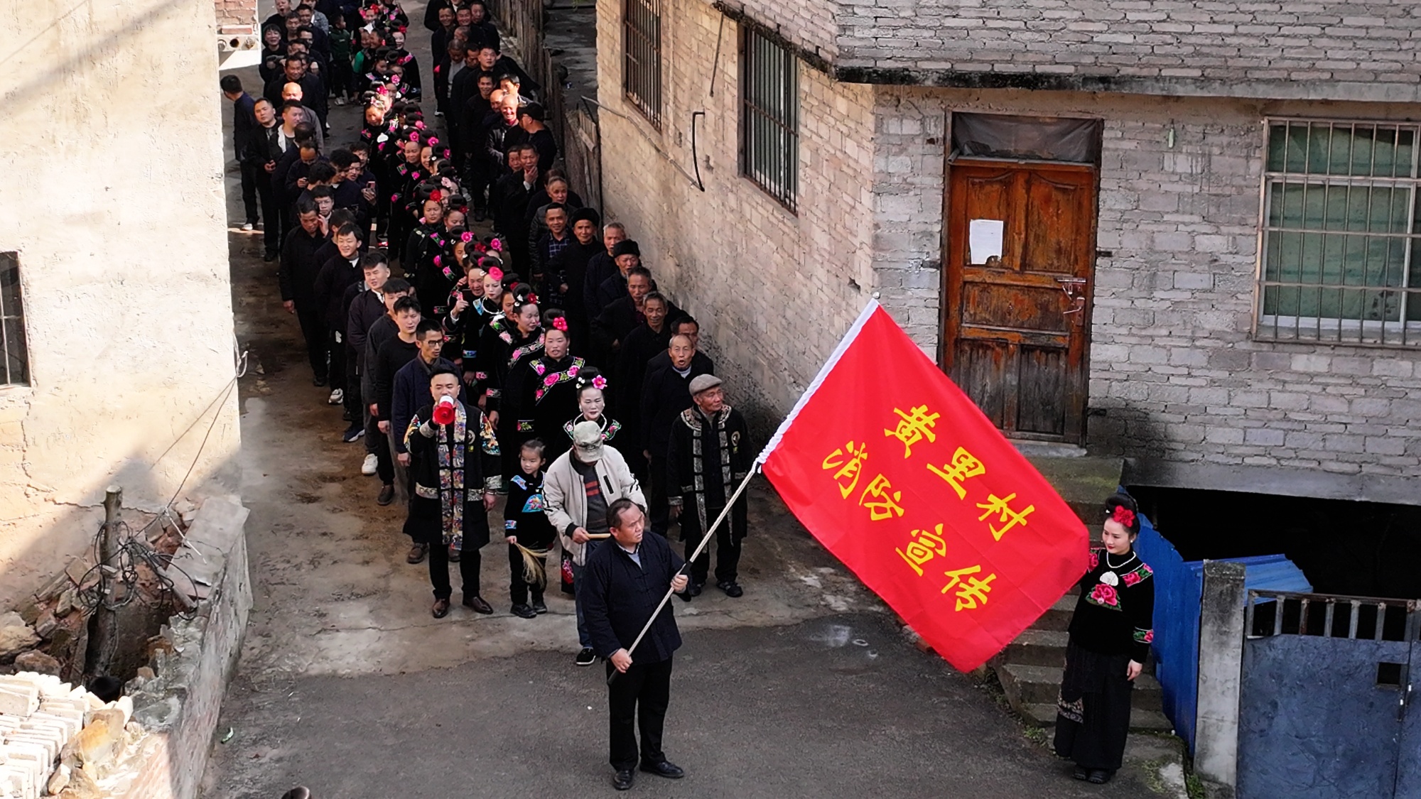 日前,贵州省黔东南州雷山县黄里村举行一年一度元旦节暨传统“扫寨”活动,通过结合冬季易发生的事故案例和特点,多形式进行消防安全宣传。