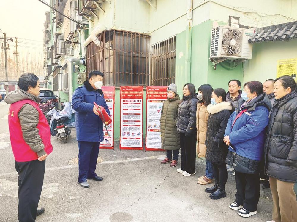 1月9 日,丛台区丛东街道东庄社区联合丛台区消防救援大队,开展“预防为主,生命至上”消防安全演练及宣传活动。为辖区居民和达康加油站工作人员普及消防知识,并入户检查消防安全,提高居民安全意识和抵御火灾能力。图为消防人员正在讲解灭火器的使用。