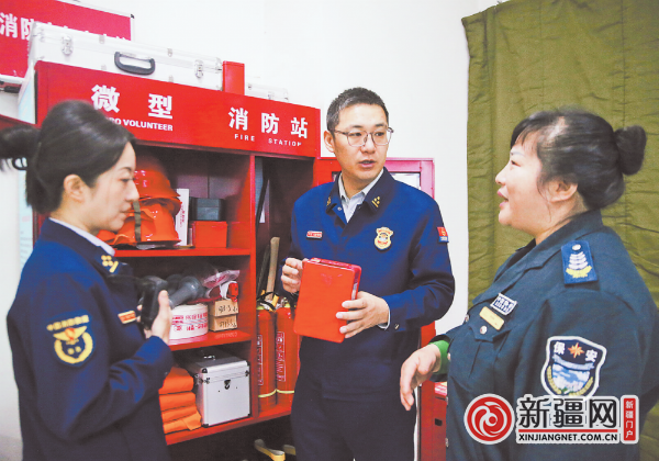 为保障节后安全生产工作,2月15日,市消防救援支队水磨沟区消防救援大队防火监督员对会展中心周边的写字楼进行消防安全检查。(全媒体记者王畅彤摄)