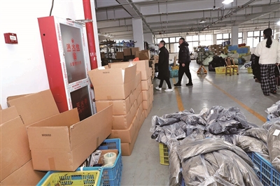 温州市文博科技产业园16幢的生产车间疏散通道堆满了货物。