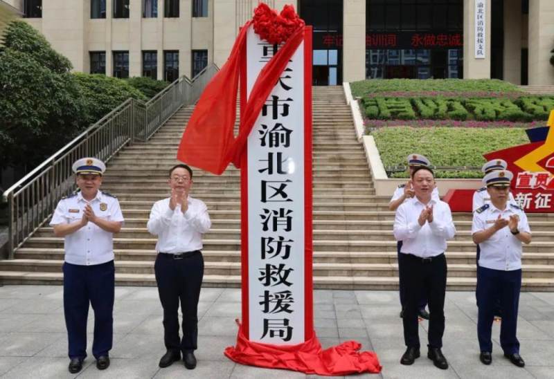6月25日,渝北区消防救援局挂牌仪式在区消防救援支队举行。渝北区委书记杨晓云,区委副书记、区长廖红军出席并揭牌。