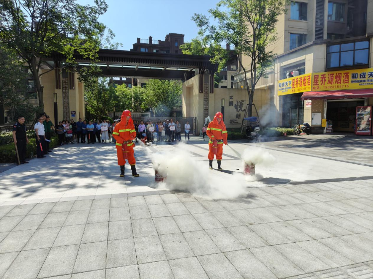 紧接着,演练活动正式拉开帷幕。此次演练分为消防器材讲解、技能实操、初期火灾扑救演练三个环节进行。首先,工作人员给大家讲解常用的消防器材使用方法,如何佩戴消防过滤式自救呼吸器、灭火器的使用等,并教给大家灭火器使用的四字口诀“提、拔、握、压”;随后,给大家演示了如何使用灭火器扑灭初起火灾并邀请辖区商户、居民和物业分站人员进行灭火实操演练。