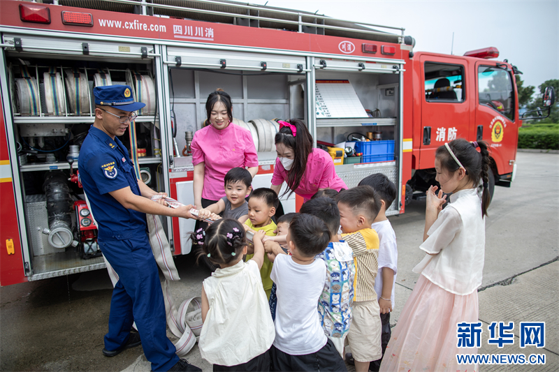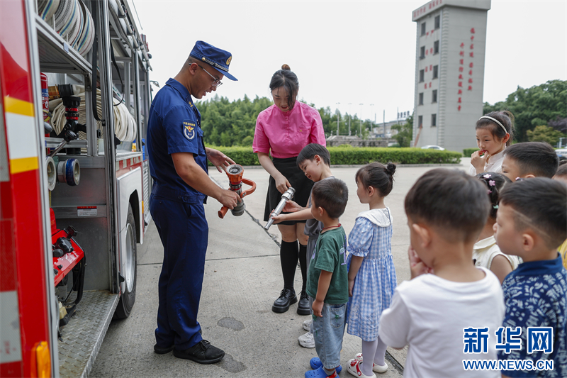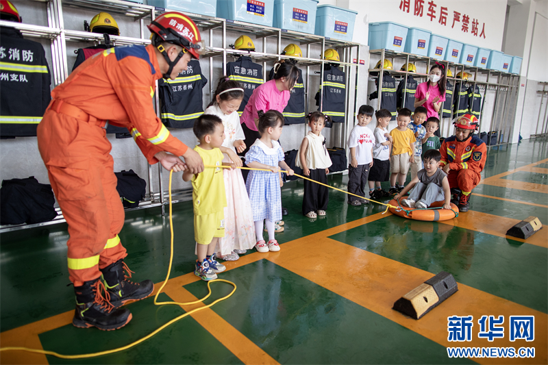 暑假期间,江苏省兴化市消防救援大队开展“暑期消防夏令营”活动。小朋友们在消防员的带领下,通过学习消防知识、体验消防装备等活动,提高自身的消防安全意识和自救能力,确保安全快乐度过暑假。(沙佳仪 报道员:周社根)