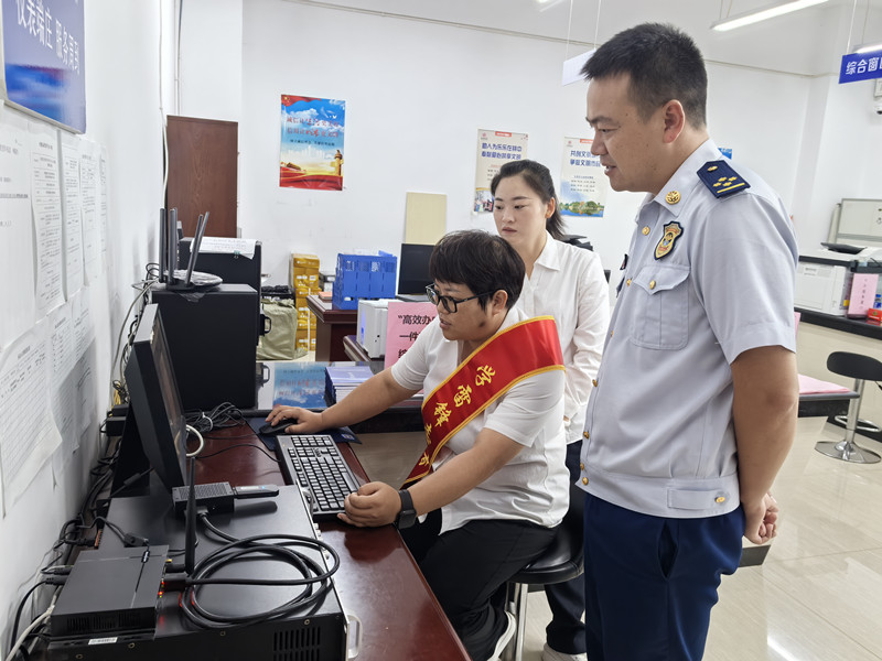 查找业务办理过程中存在的问题(9月2日摄)。