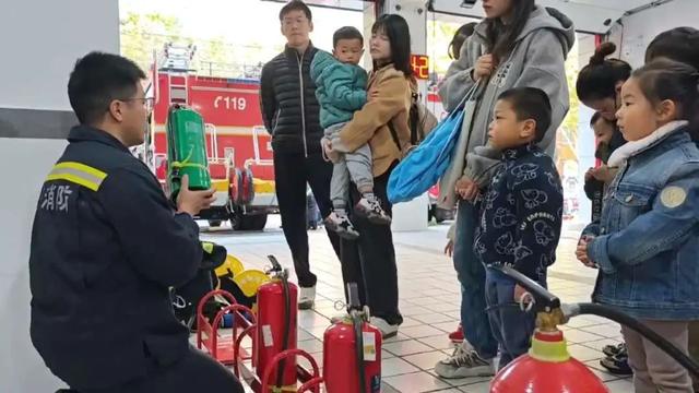 在参观的过程中,亲子家庭们零距离了解了消防员的工作和消防车的装备配置。同时,通过消防员的讲解,大家也了解到,需要用不同的灭火器来应对不同的火情,并且灭火器的使用方法要正确。