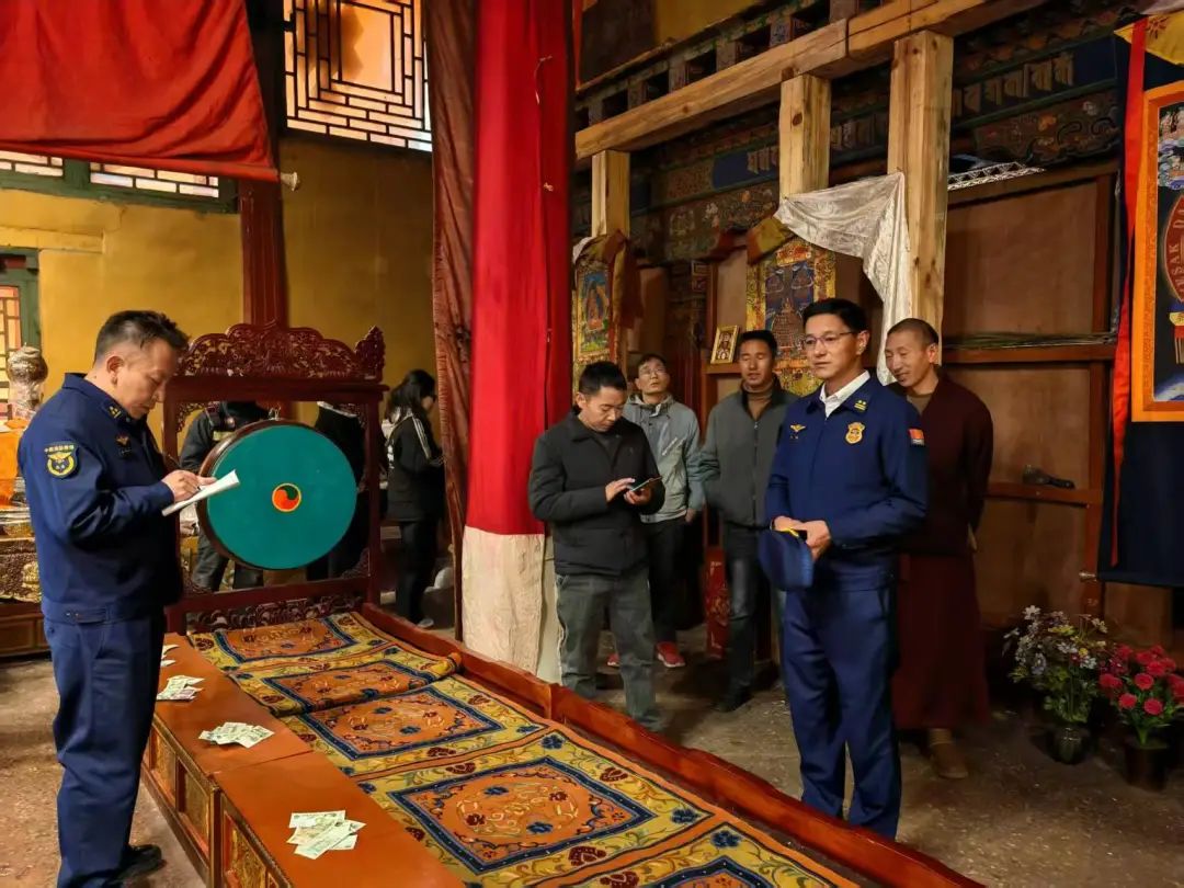 检查过程中,多拉支队长一行实地查看了寺庙殿堂、供灯房、集中炊事房、僧舍等重点部位,重点对电气线路敷设是否规范、用火用电是否符合要求、室外消火栓设置是否符合标准、场所内消防设施器材是否完好有效、安全疏散通道是否顺畅、消防水源是否充足、场所管理人员是否懂得基本消防安全常识等情况进行了详细检查。