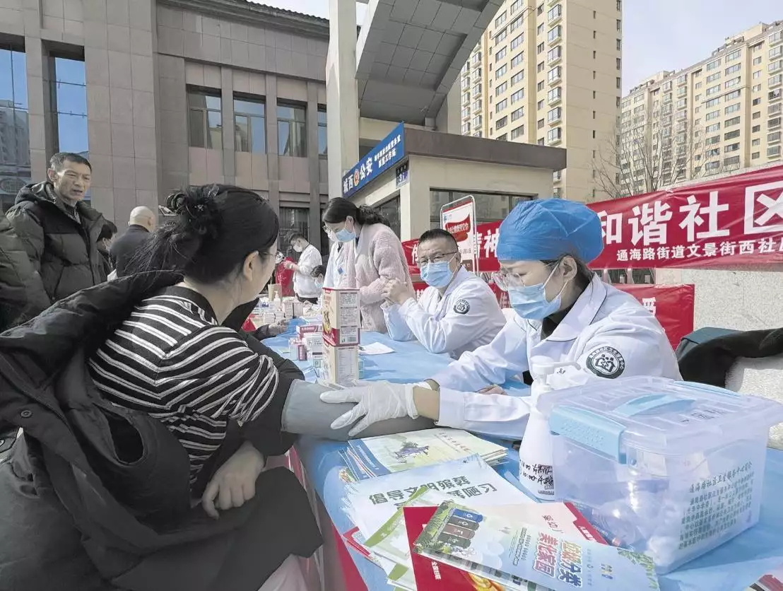 在海东市民和回族土族自治县市民广场,民和县中医院组织公共卫生团队举办义诊活动,前来咨询和就诊的群众络绎不绝,医疗团队为群众测量血压、血糖,耐心解答各类健康问题。对患有慢性病的老人,医生根据检查结果提供个性化治疗方案与饮食、运动建议,叮嘱他们按时服药、定期复查。